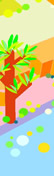 is a pool with fish, trees and flowers around, and lots of playing equipment.